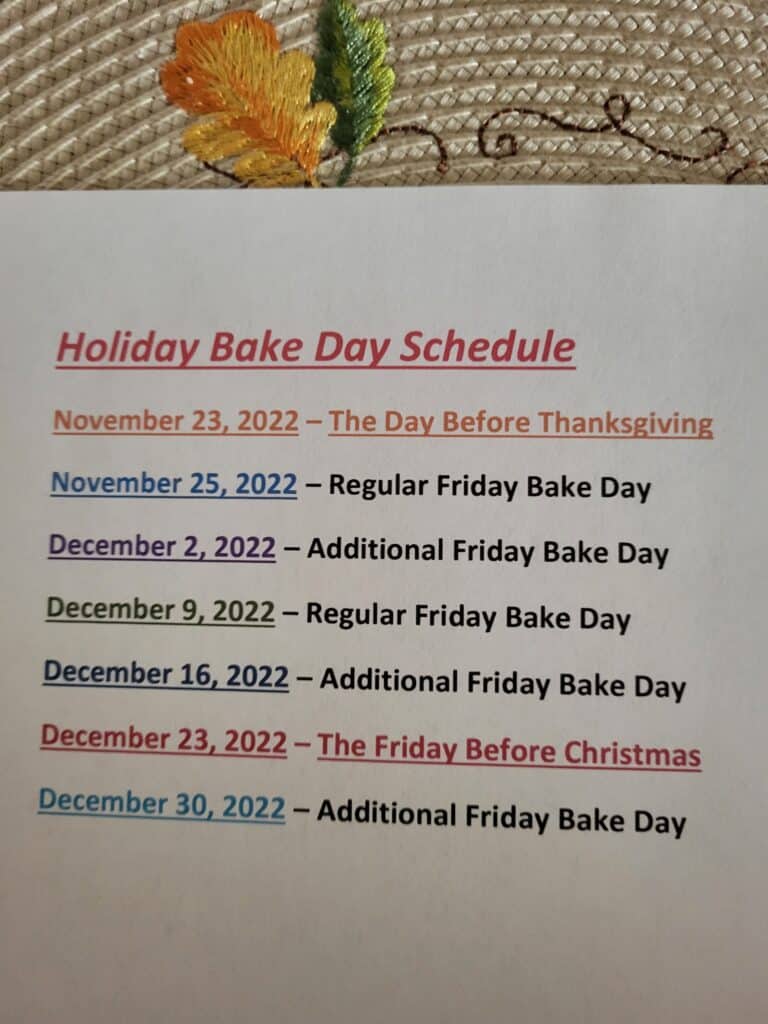 We gladly bake for your Thanksgiving Celebration and also on every Friday in 2022.