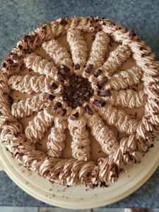 I made a Hazelnut Cacao Cake with Raspberry Jam in the layers and Chocolate Buttercream – Delicious